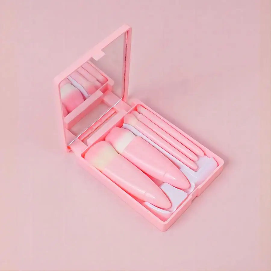 5pcs Travel Size Makeup Brushes Set Mini Makeup Brushes, Small Complete Function Cosmetic Brushes Kit With Case And Mirror Perfe