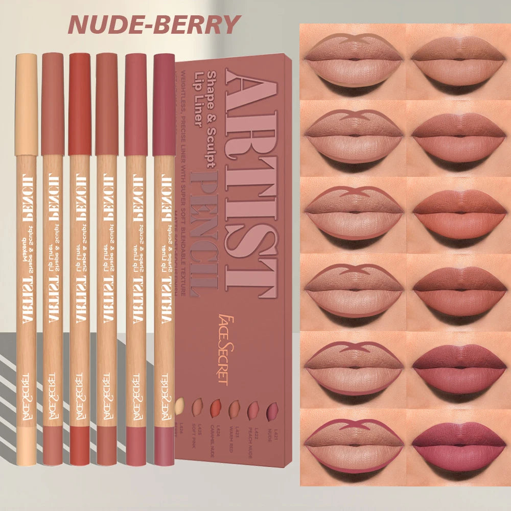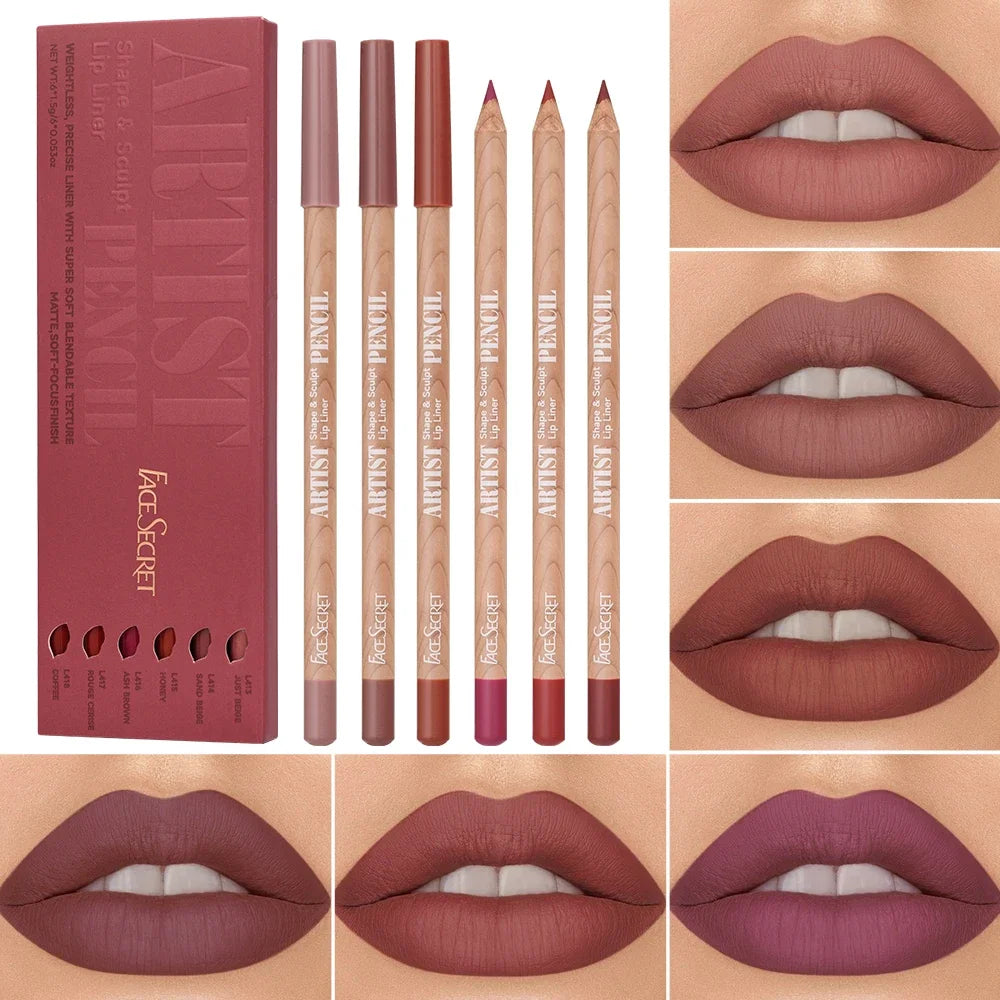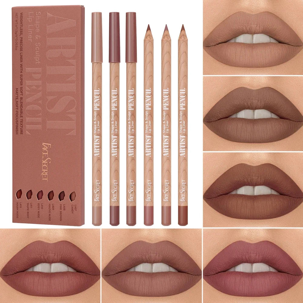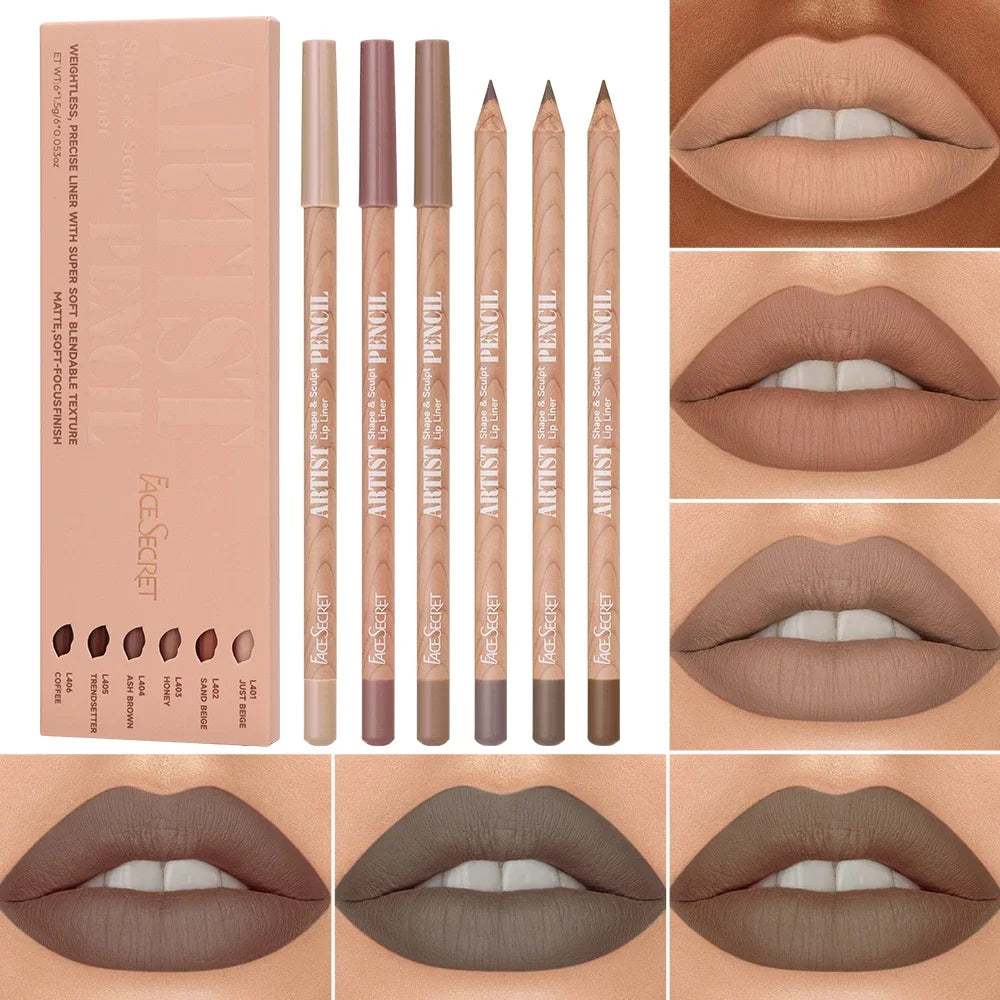 6pcs Lip Liner Pen 6 Colors Waterproof And Sweat-proof Not Easy To Fade Non-stick Cup Nude Lipstick Pencil SET
