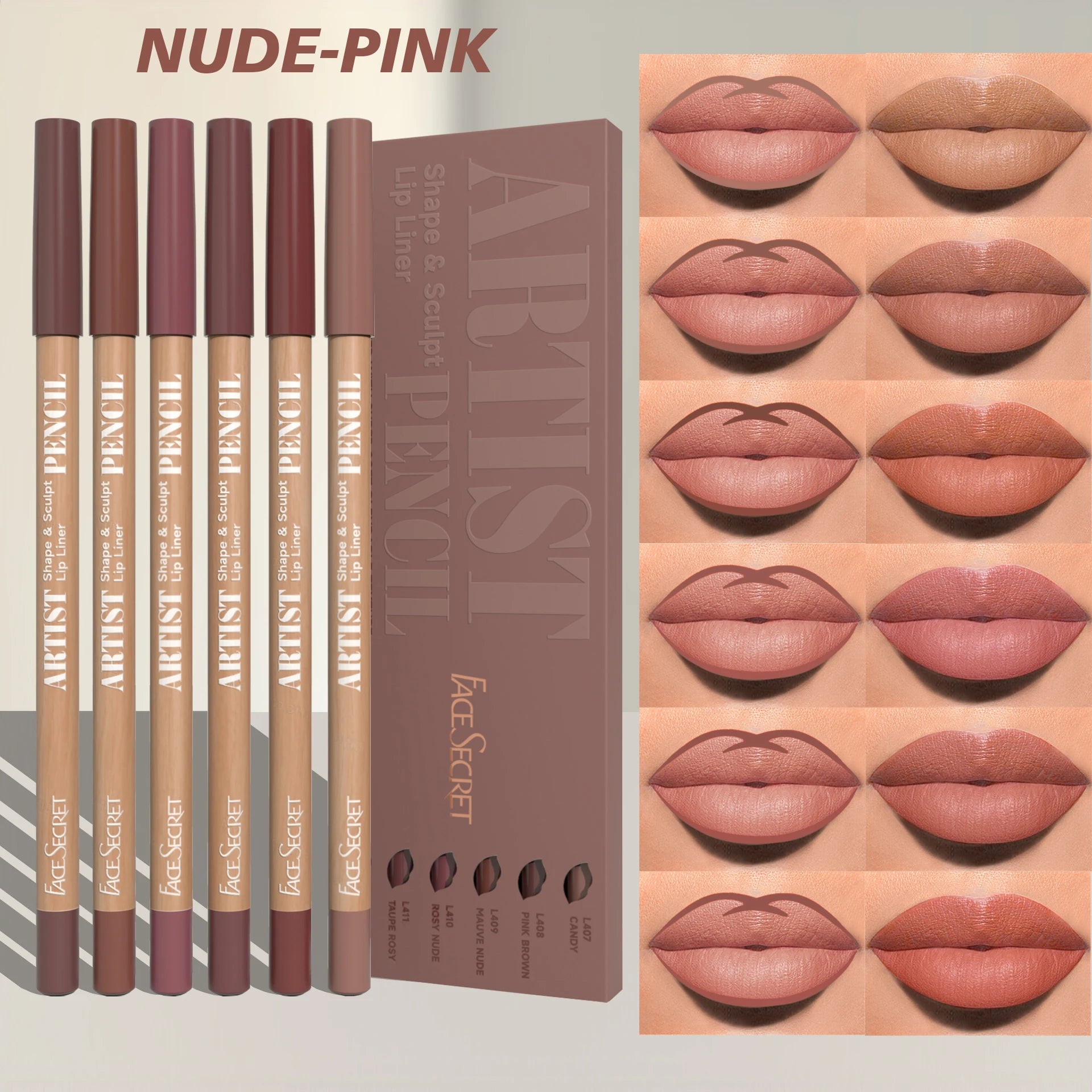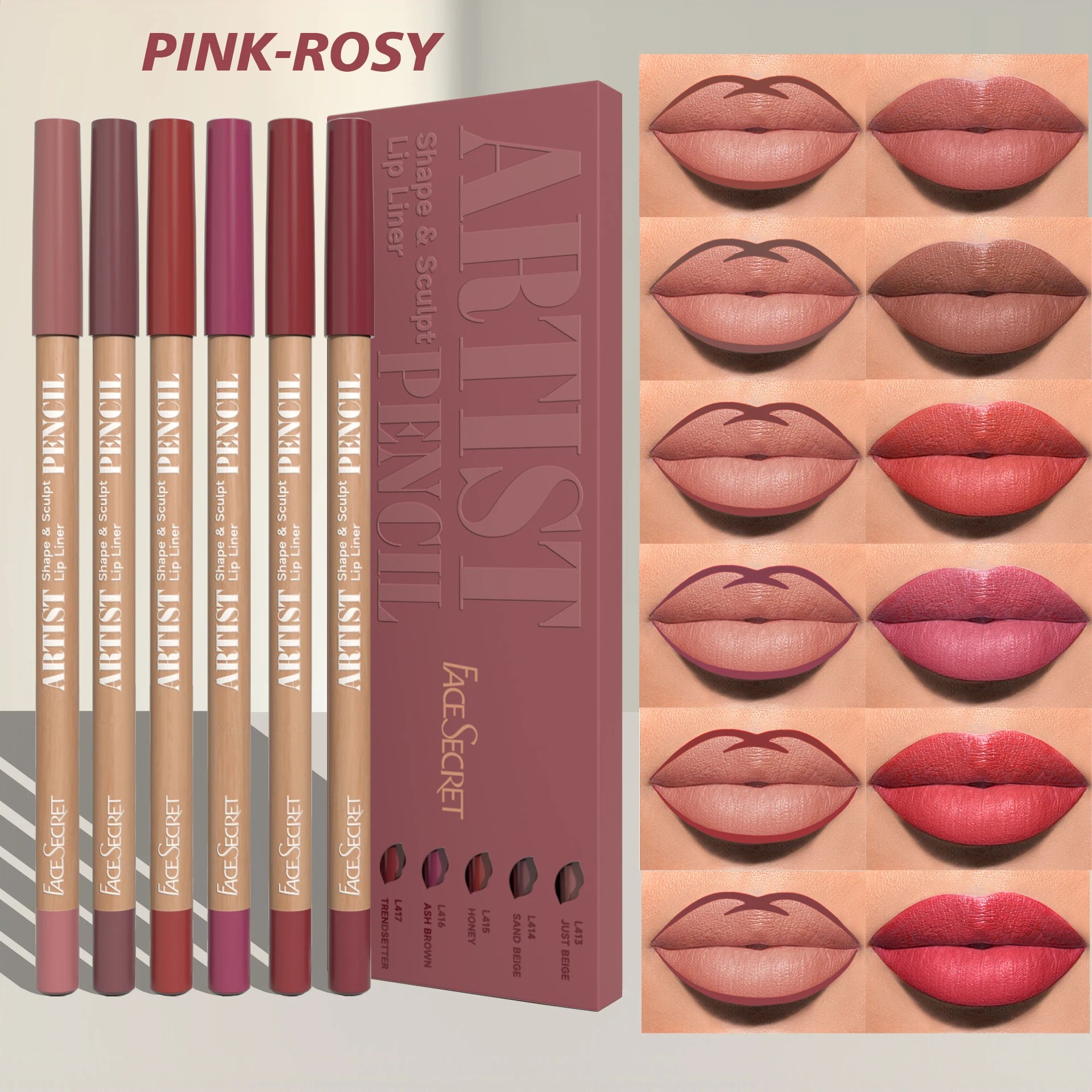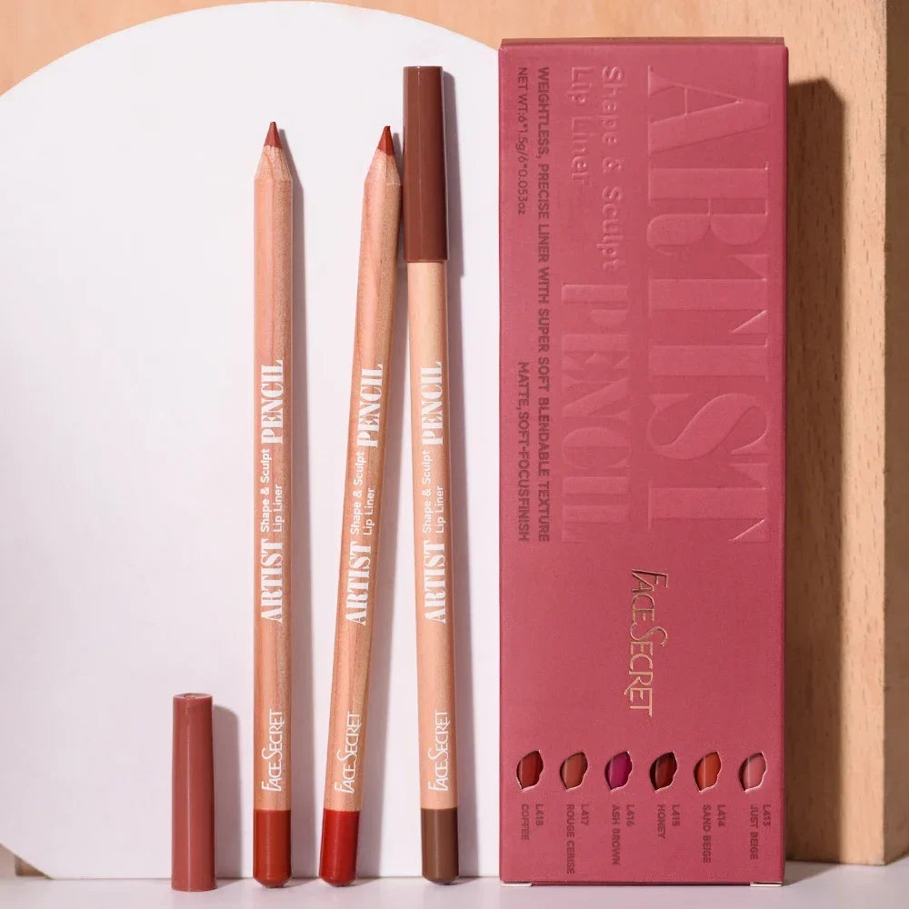 6pcs Lip Liner Pen 6 Colors Waterproof And Sweat-proof Not Easy To Fade Non-stick Cup Nude Lipstick Pencil SET