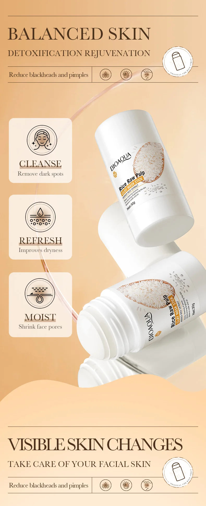 BIOAQUA White Rice Face Mask Stick Mud Facial Masks Moisturizing Blackhead Removal Firming Clay Mask Face Skin Care Products