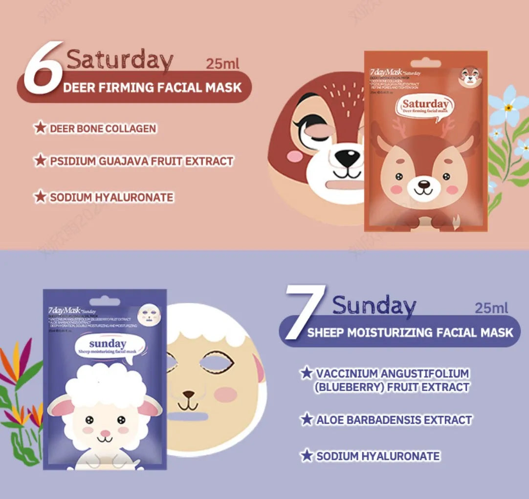 Lightening: Cartoon printed face masks contain ingredients that can help lighten the complexion, promoting a more radiant and glowing skin.