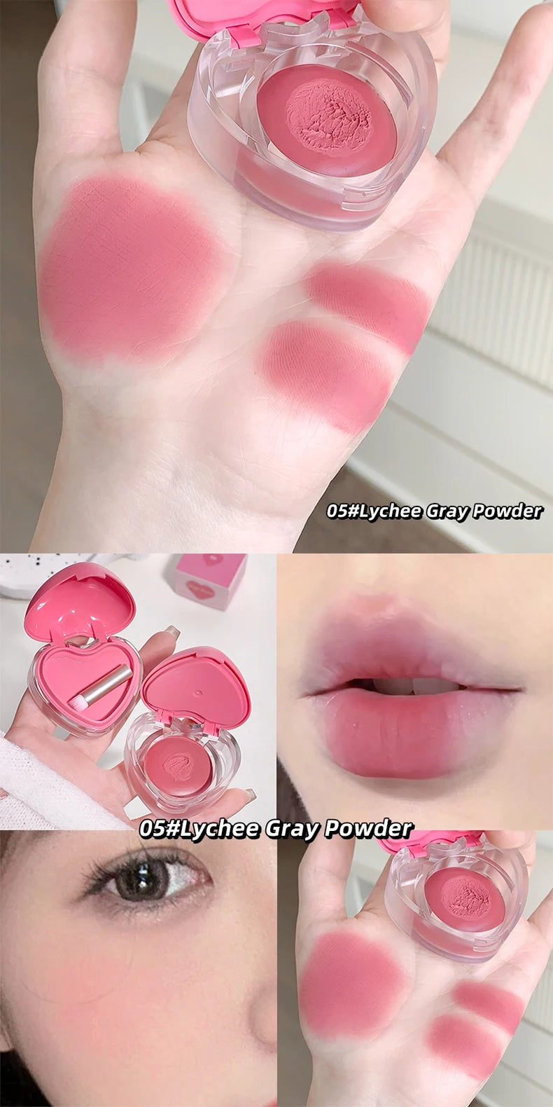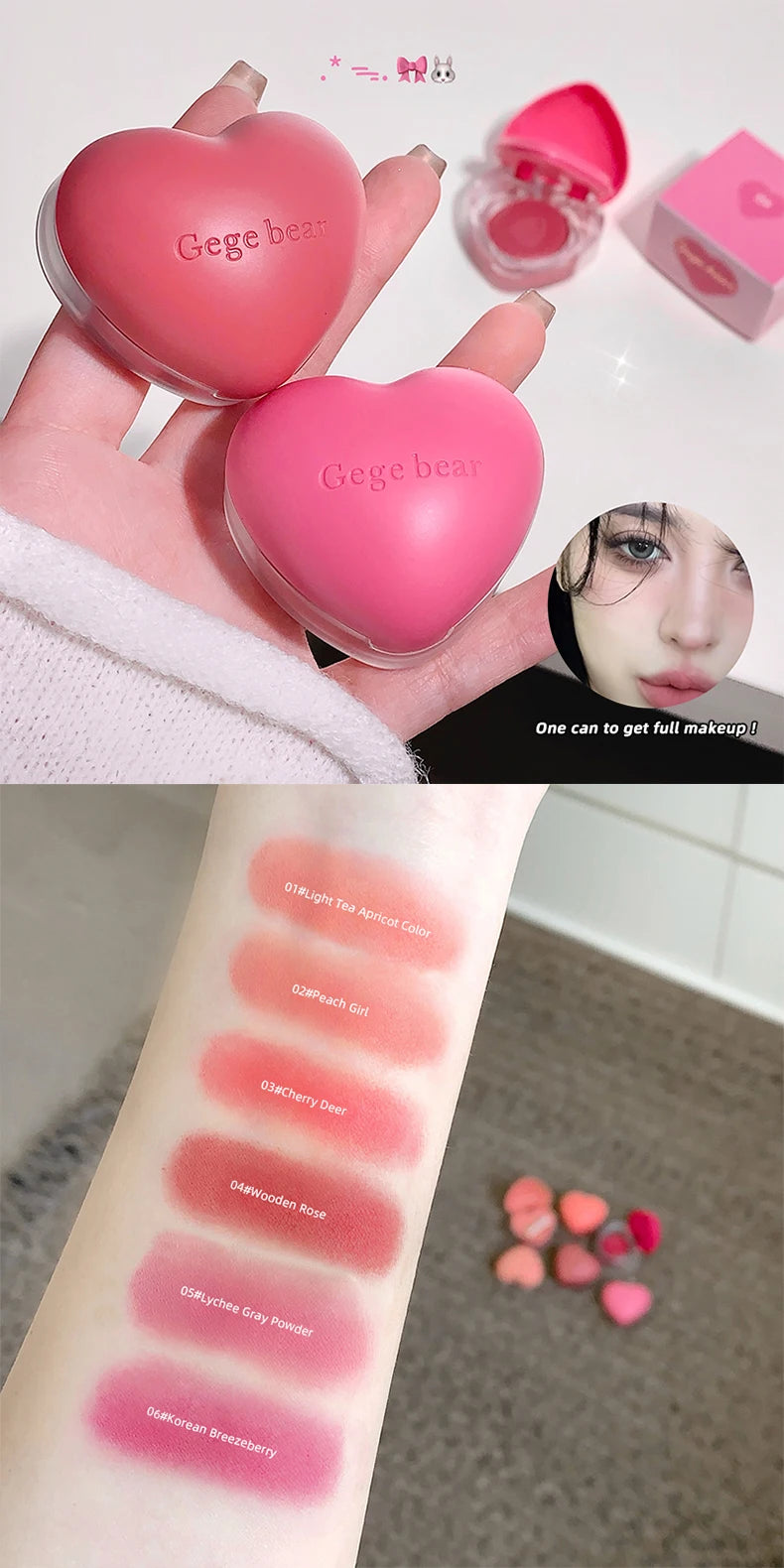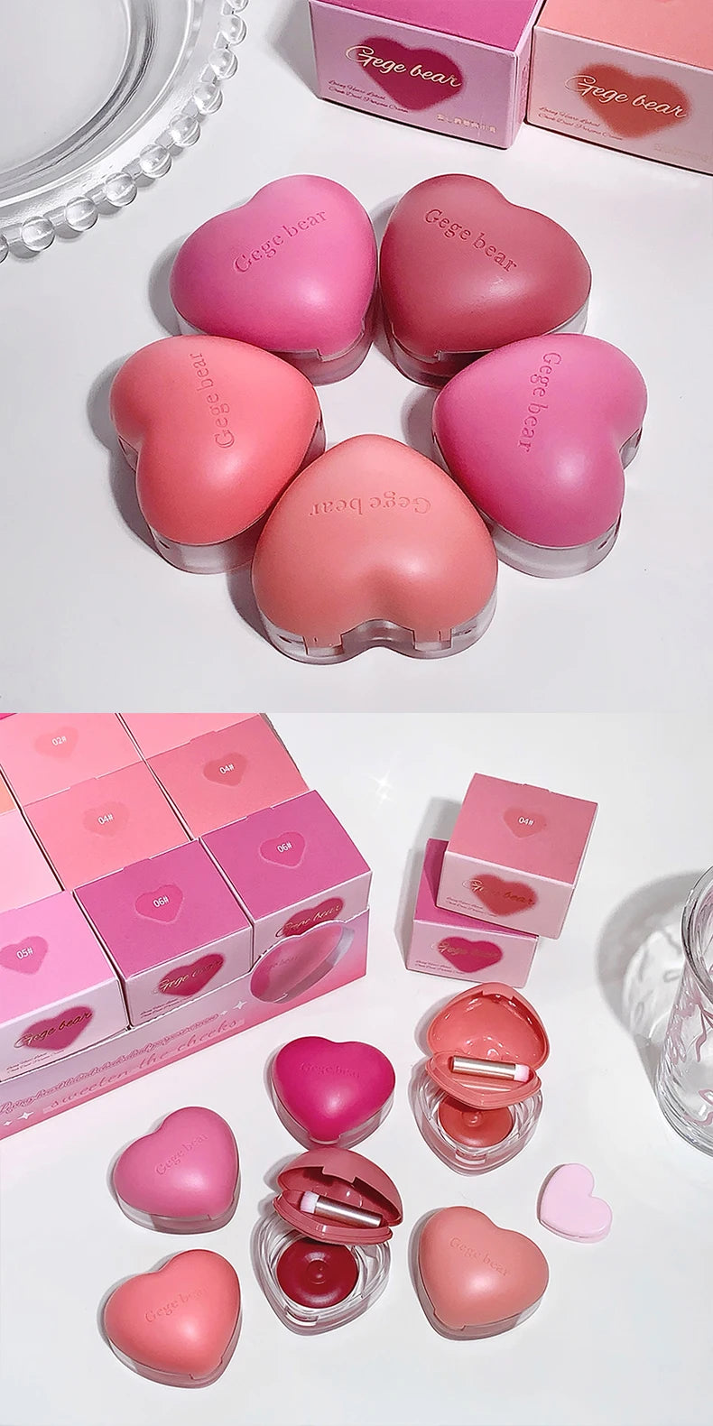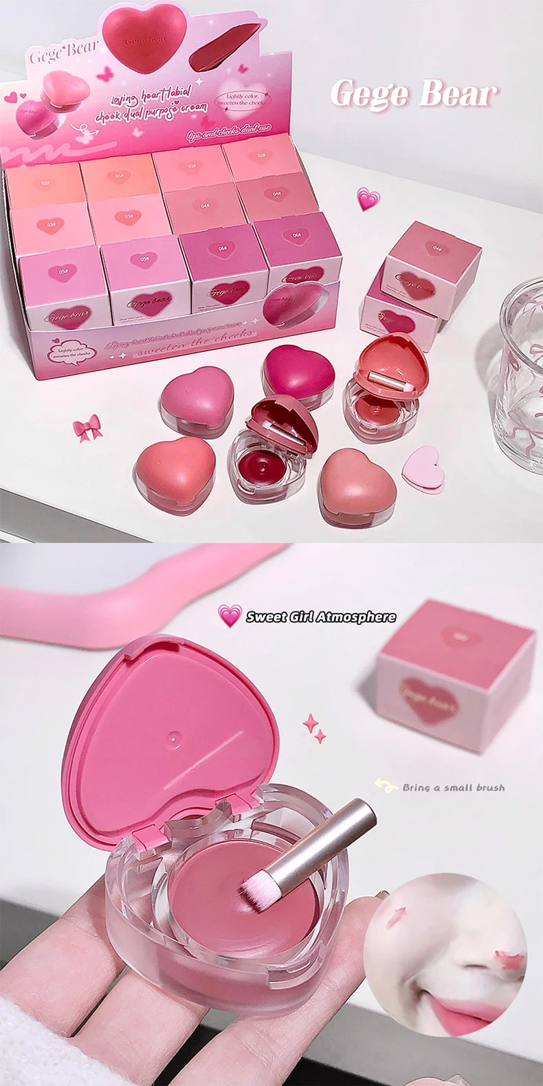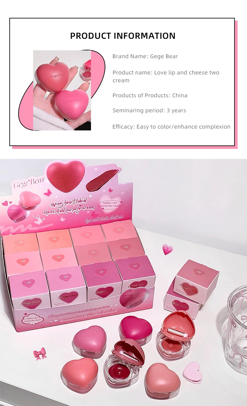 Gegebear Love Lip and Cheek Cream Matte Powder Soft Color Love Valentine's Day