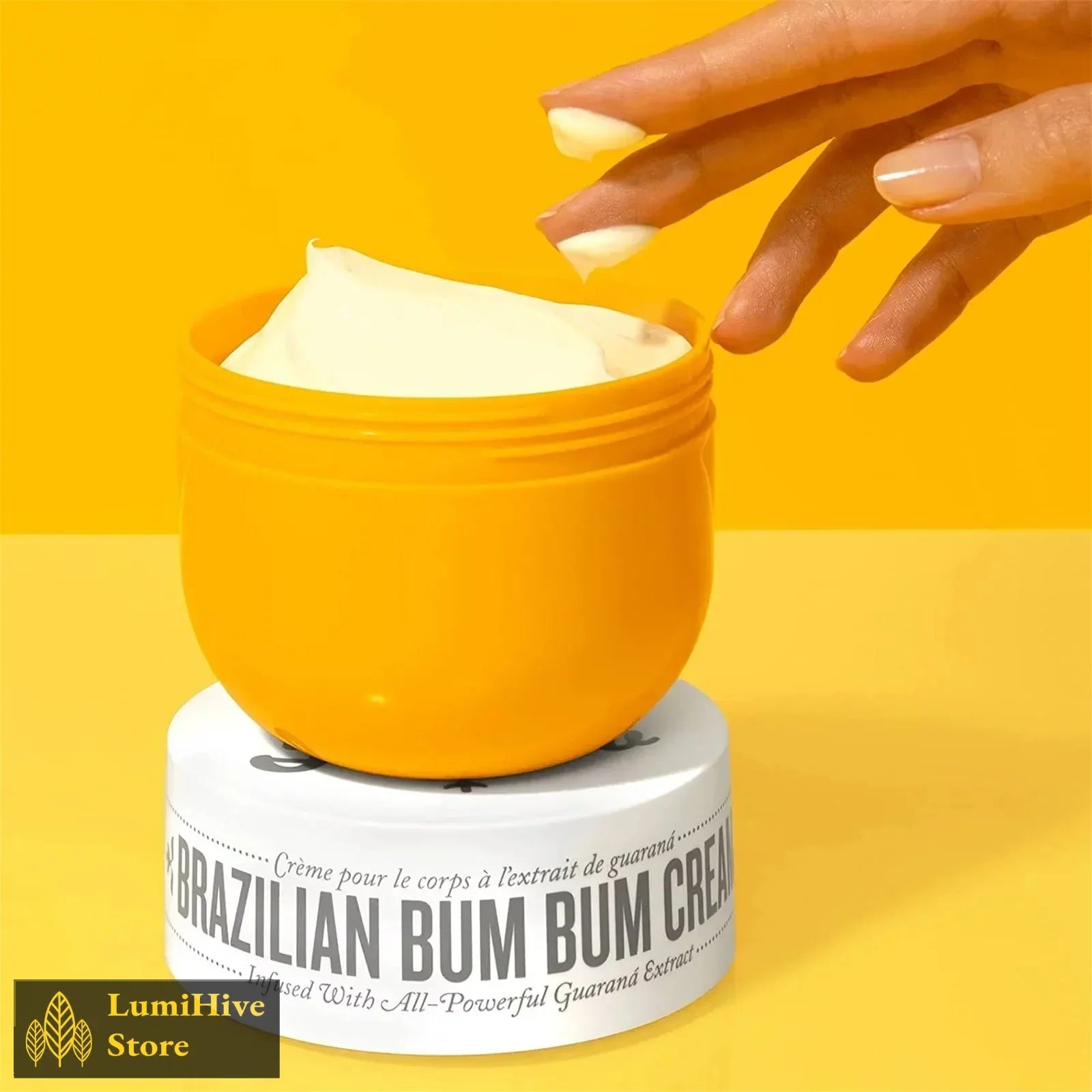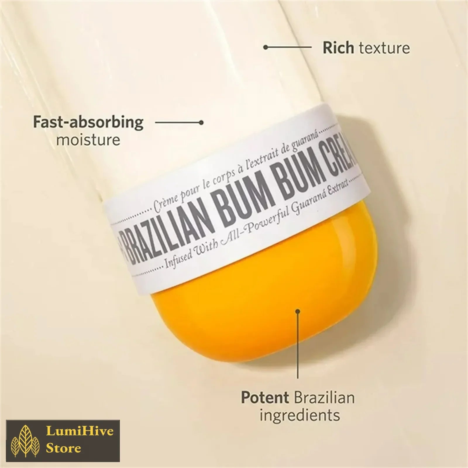 Experience the firming power of the Brazilian Bum Paste, a 240ml body cream infused with guarana, cupuaçu butter, and nourishing oils. Guarana, rich in caffeine, boosts circulation to tighten and smooth skin, while cupuaçu butter deeply hydrates and oils soften for a silky finish. Ideal for your bum, legs, tummy, and arms, this paste enhances skin’s firmness and imparts a radiant glow without greasiness. Massage in circular motions to activate warmth and improve absorption, revealing visibly lifted, smooth, and supple skin. Recommended by tanga-wearers and skincare enthusiasts alike.