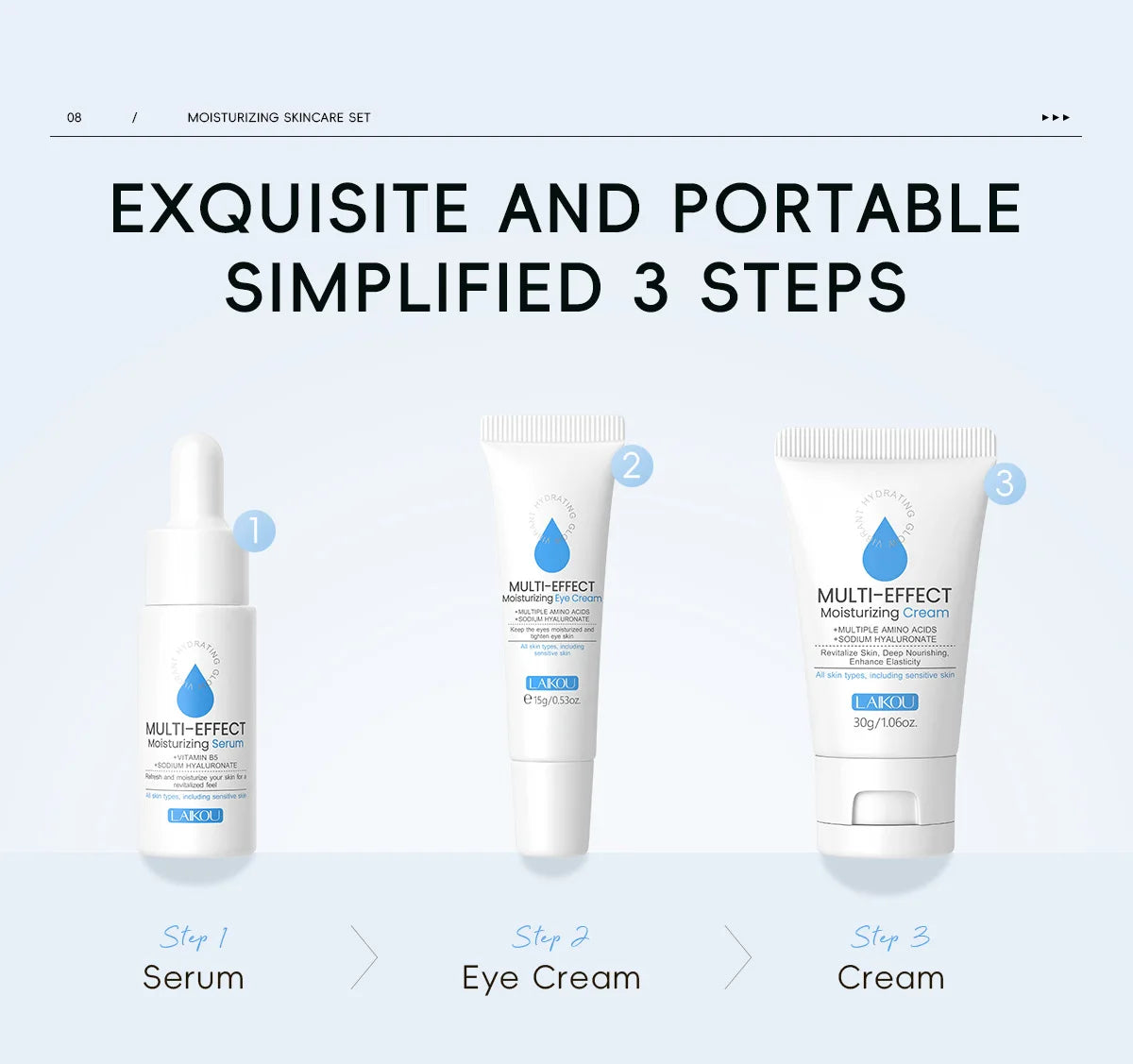 LAIKOU Nourishing Moisture Surge Hydration 3-Piece (Essence + Eye Cream + Face Cream) Skin Firming Skincare Set