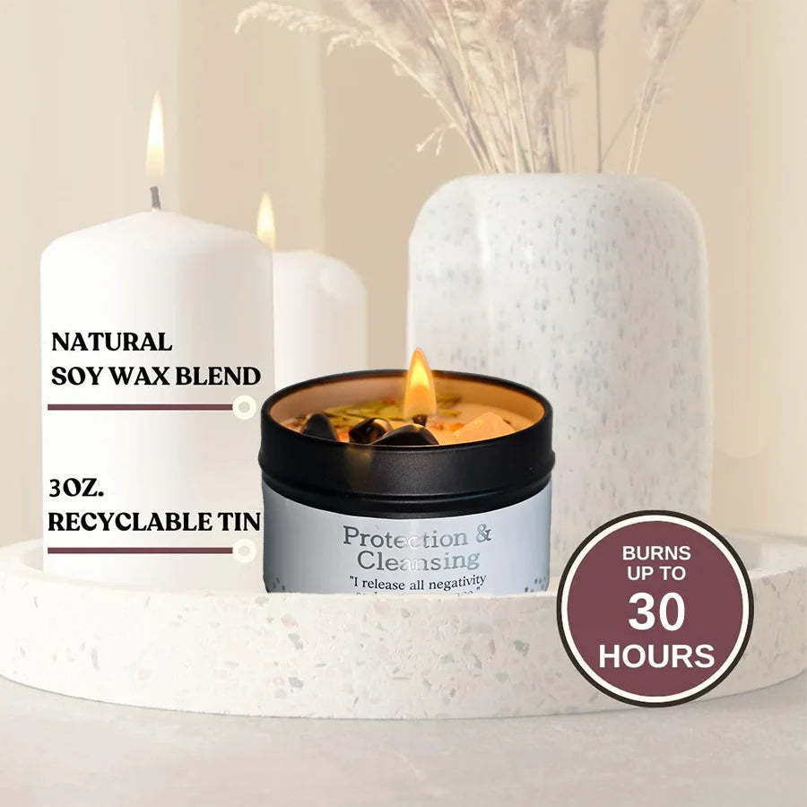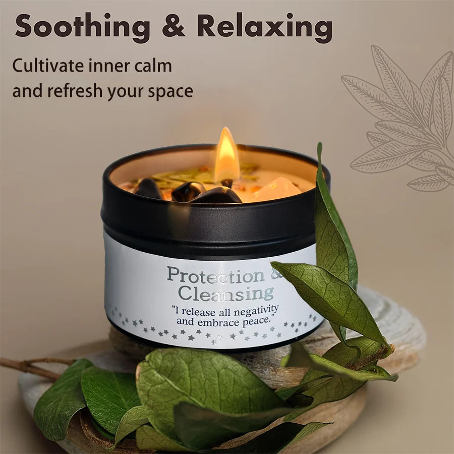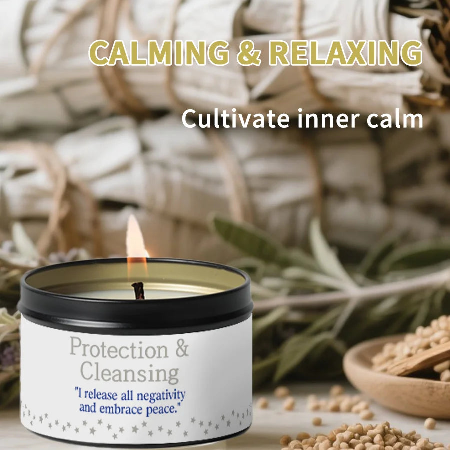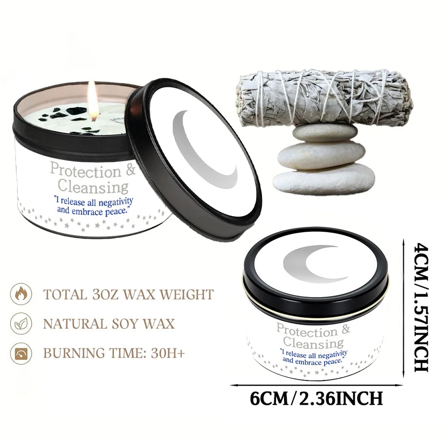 Protection & Cleansing Intention Candle | Scented Soy Candle for Negative Energy Clearing | Spiritual Ritual Gift with Card