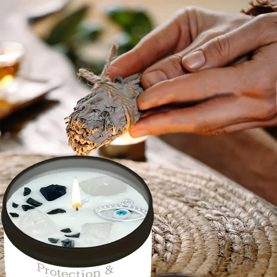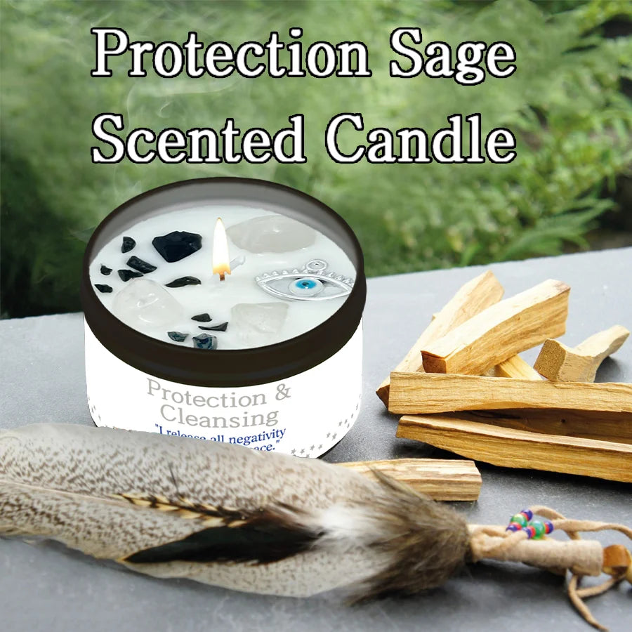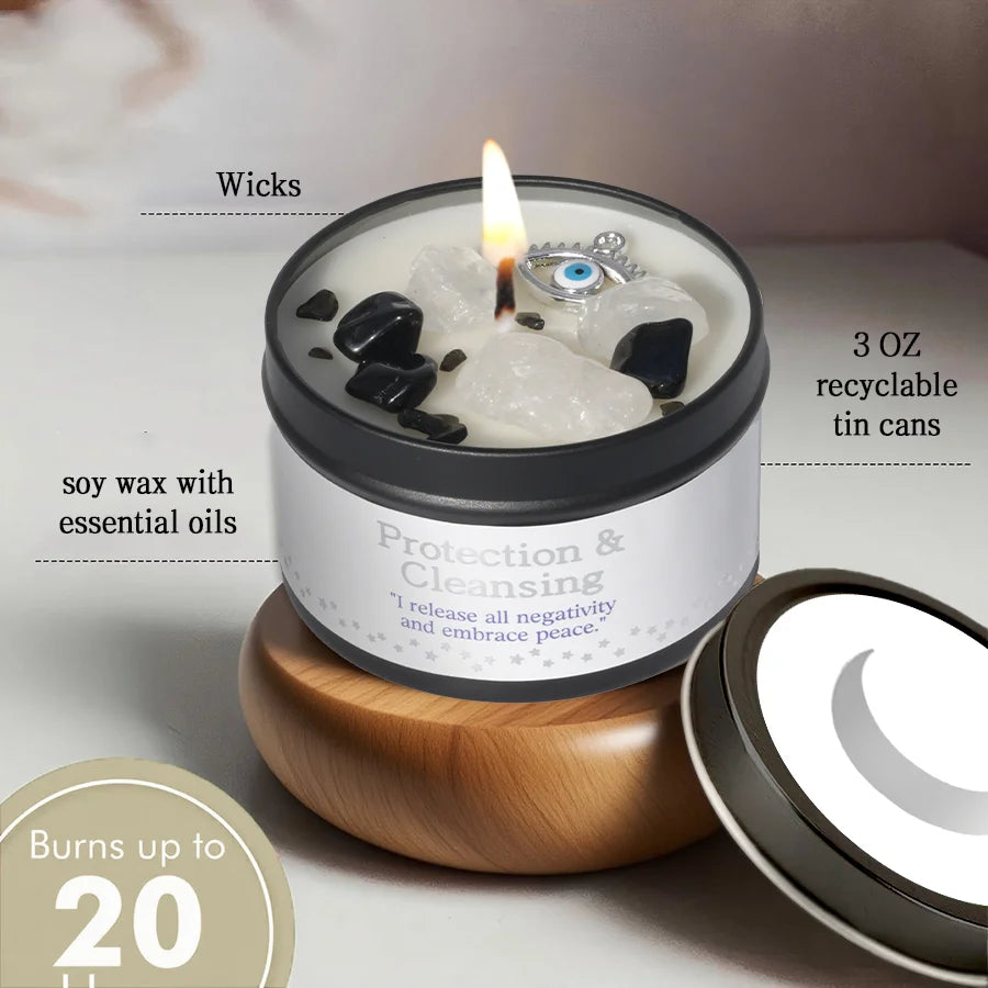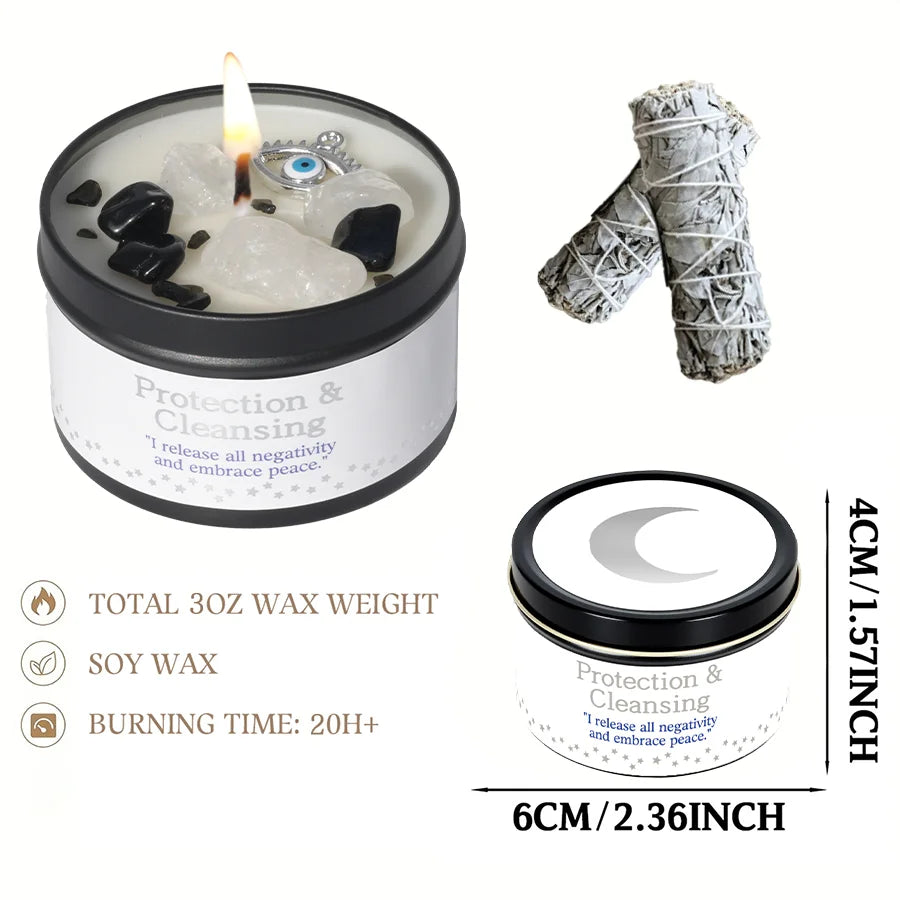 Protection & Cleansing Intention Candle | Scented Soy Candle for Negative Energy Clearing | Spiritual Ritual Gift with Card