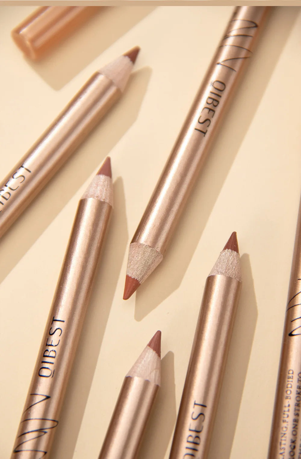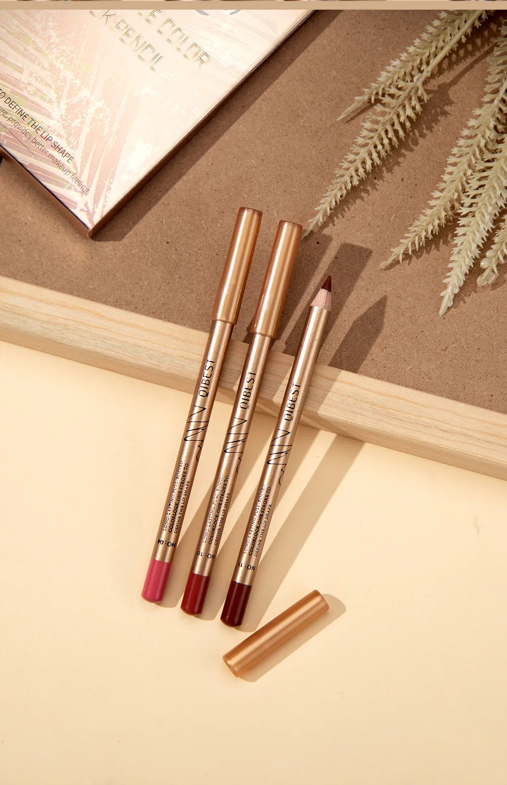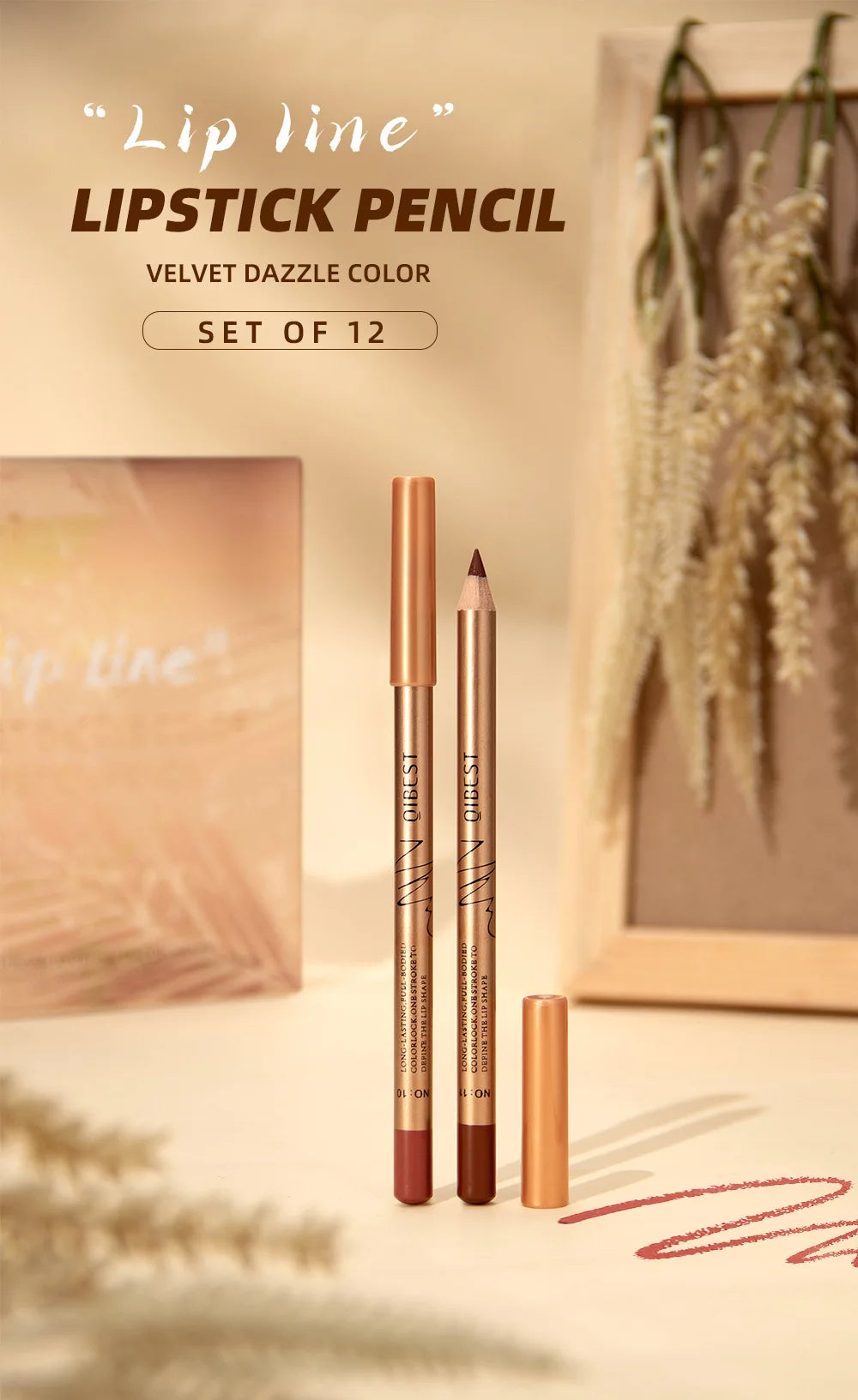 QIBEST 12 colors matte lip liner set colorful not easy to smudge long-lasting non-stick cup matte gold tube lip liner