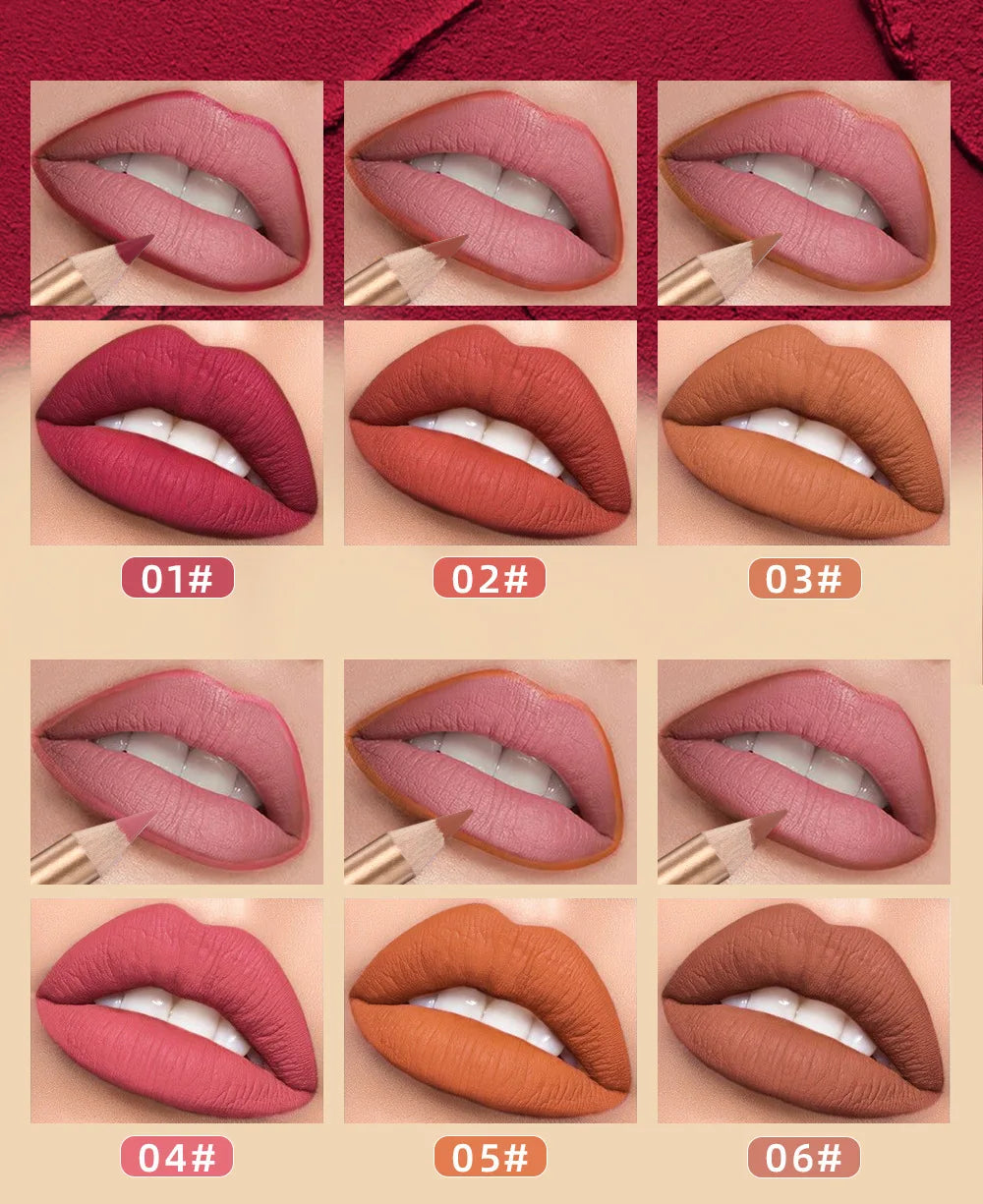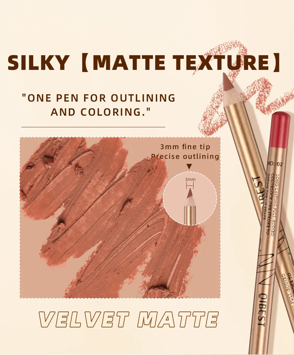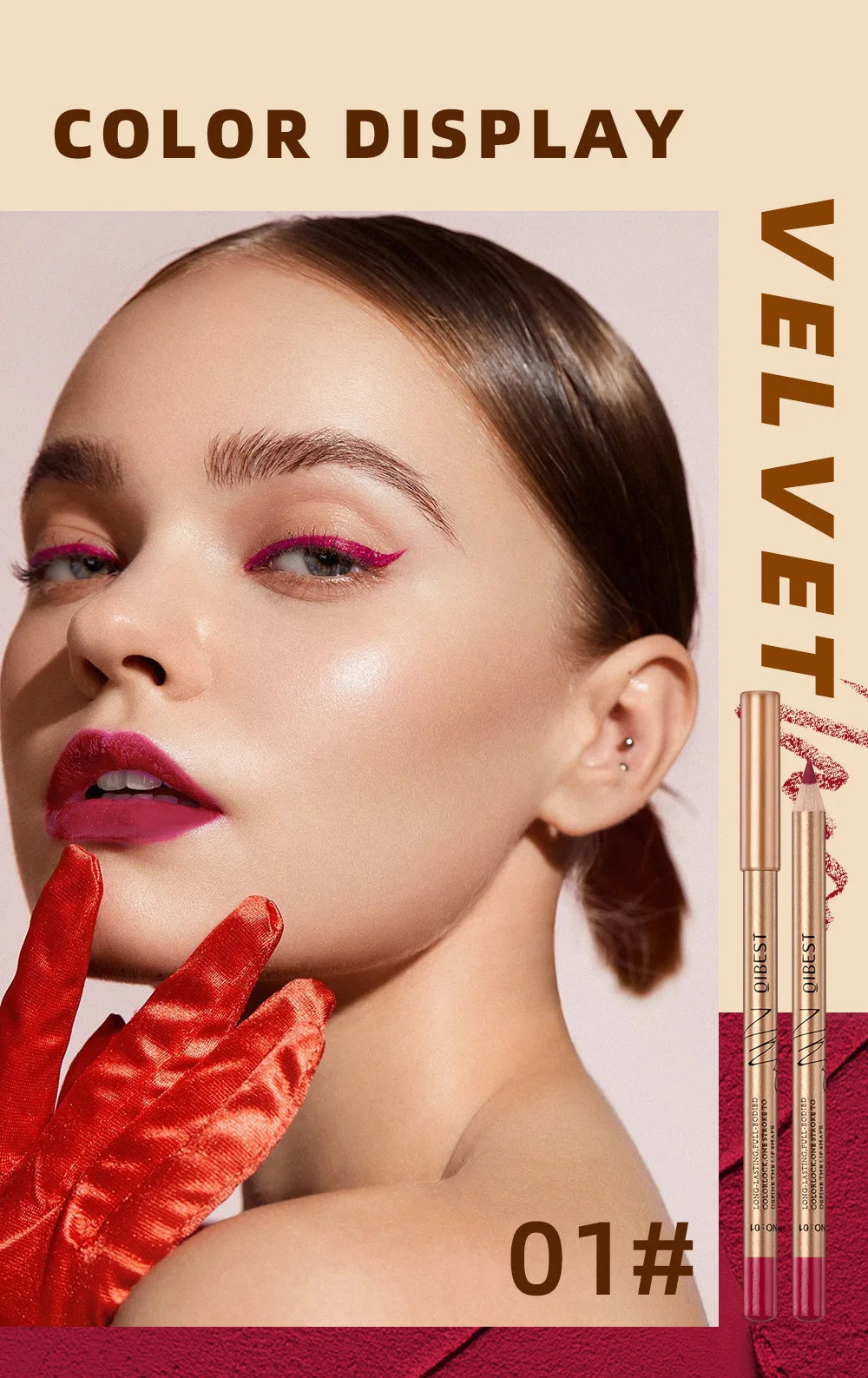 QIBEST 12 colors matte lip liner set colorful not easy to smudge long-lasting non-stick cup matte gold tube lip liner