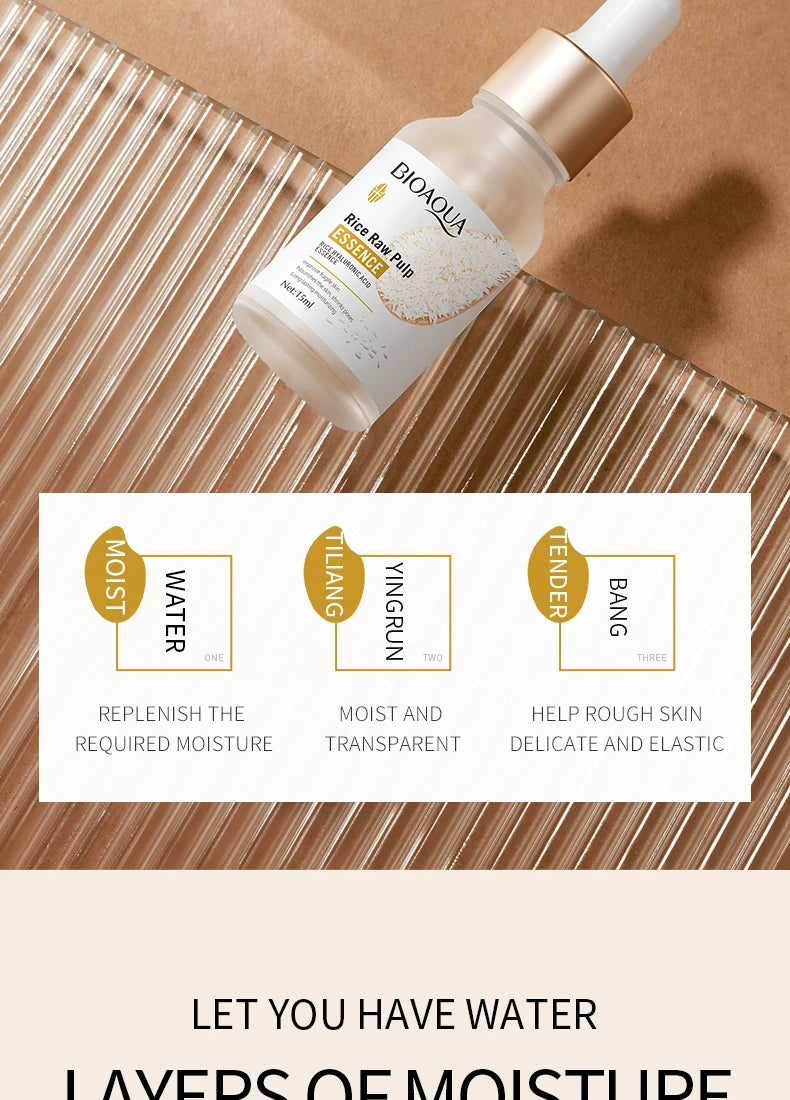 Rice hyaluronic acid essence moisturizes, moisturizes, brightens skin tone, improves skin roughness, and is a gentle serum