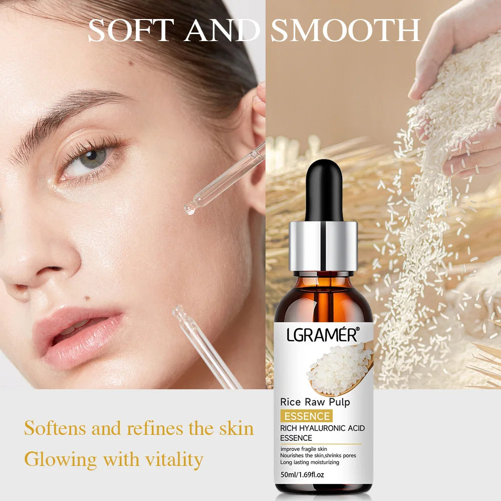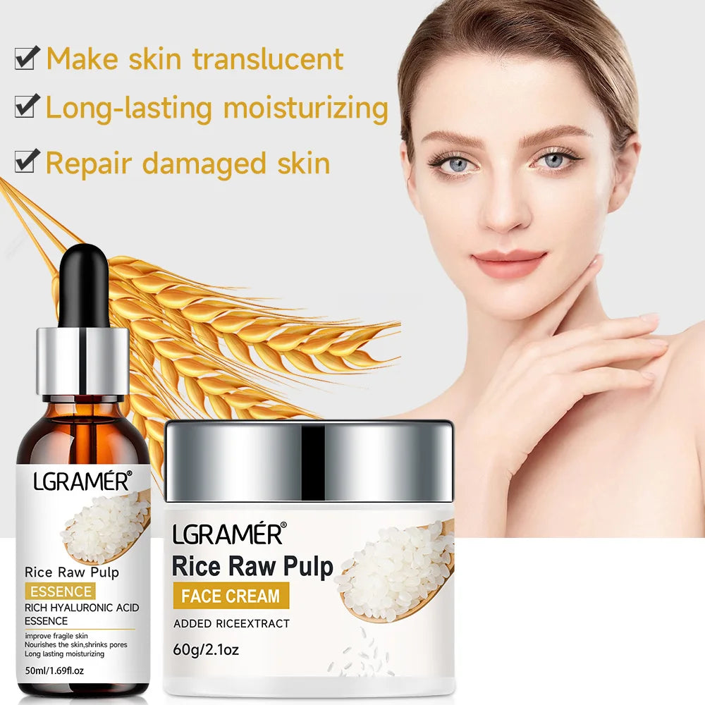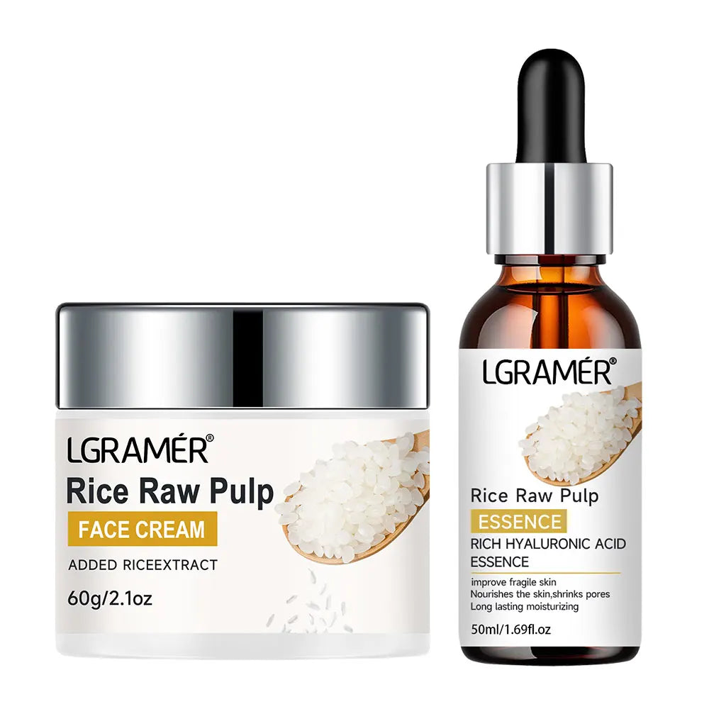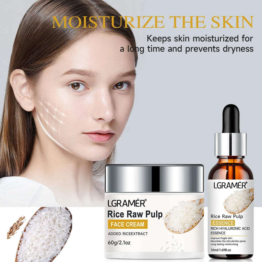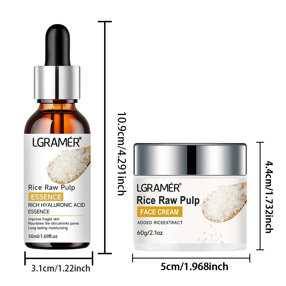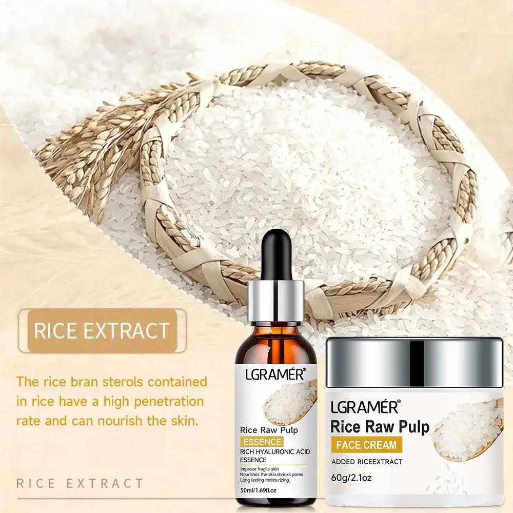 White Rice Serum Cream Combo Smooth Wrinkles Lifting Shrink Pores for Younger Healthier Skin Moisturizing Rice Raw Pulp Care Se